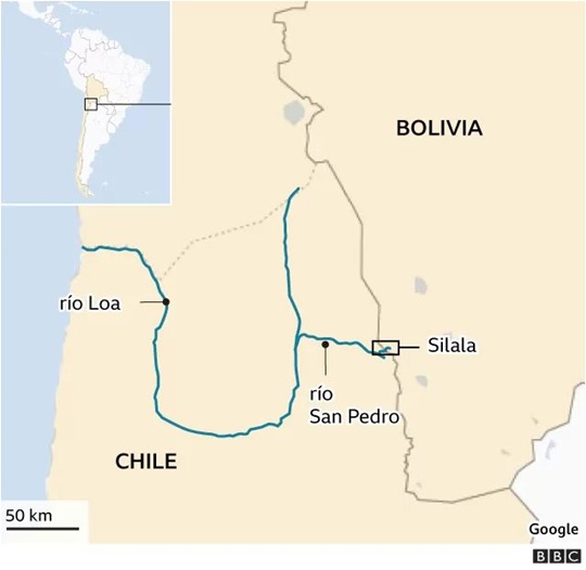 Chile asegura que se trata de un río internacional, que nace en Bolivia, cruza la frontera hacia Chile y desemboca en el Río San Pedro de Inacaliri, en la cuenca hidrográfica del Pacífico.
