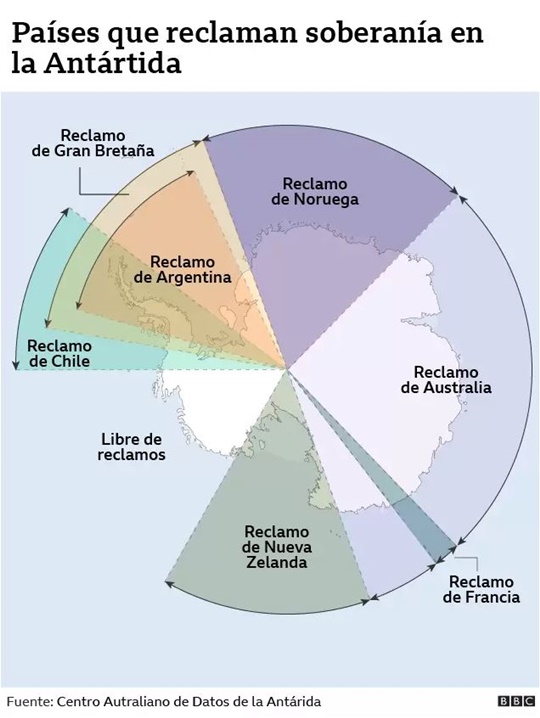Y es que Argentina y Reino Unido son los únicos países que reclaman exactamente la misma porción de territorio del continente blanco.