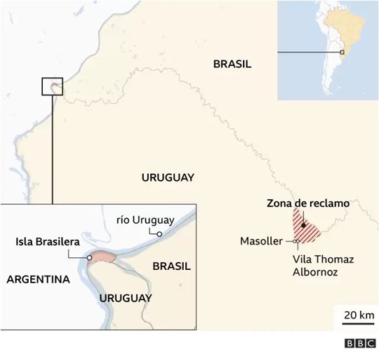 El gobierno uruguayo afirma que la isla está localizada en el desagüe del río Uruguay y que su posesión no estaría determinada en los tratados de fronteras. Brasil, que puso su marca en el territorio en 1862 e instaló una familia ahí en los años 60, diverge de esa interpretación.