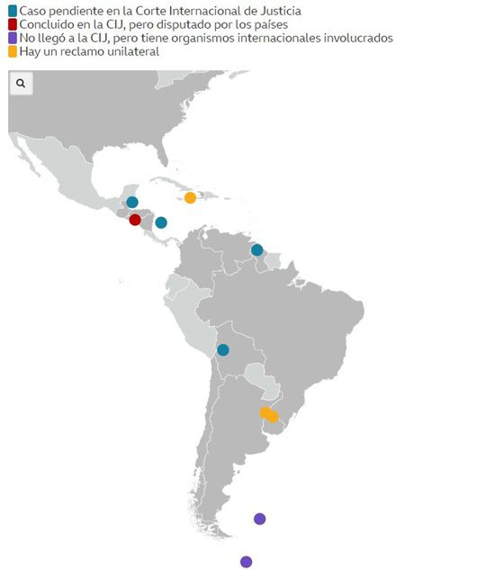 En América Latina hay varias disputas territoriales entre algunos países del continente o con países como Reino Unido y Estados Unidos.