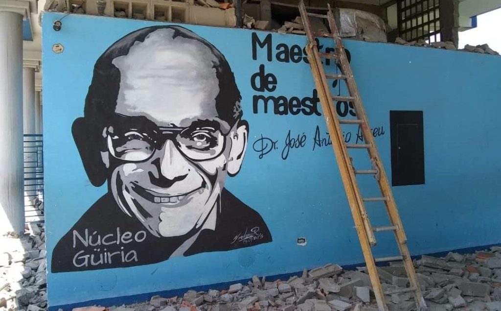 La sede del sistema de orquesta en Güiria, construida en 1990, fue la más deñada con el sismo ocurrido el 21 de agosto de 2018. Para el momento del sismo estudiaban allí 450 jóvenes y niños integrantes de las Orquestas Sinfónica Juvenil e Infantil y el Kinder Preescolar e inicial del Sistema en esta localidad (Cortesía Crónica Uno).