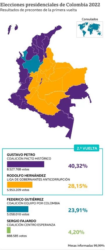 El izquierdista Gustavo Petro, exalcalde de Bogotá, fue el más votado en la primera vuelta electoral del domingo y Rodolfo Hernández, exalcalde de Bucaramanga y “políticamente incorrecto”, sorprendió a muchos al pasar a la segunda vuelta presidencial de Colombia.