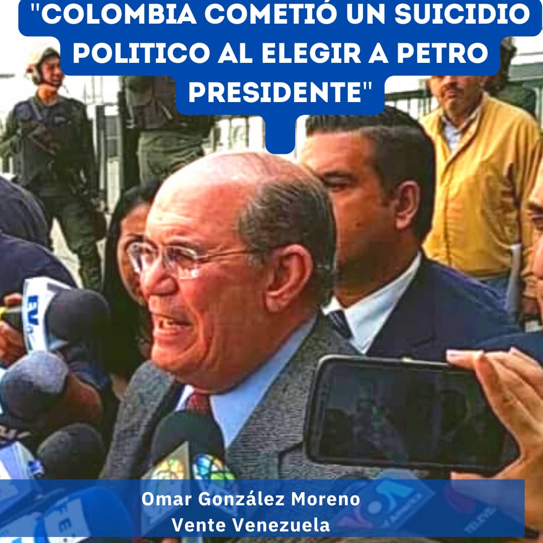 Nota de Prensa-. Para Omar González Moreno -dirigente nacional de Vente Venezuela-“Los colombianos cometieron un suicidio político al elegir como Presidente a Gustavo Petro, un guerrillero del M-19 con abiertos nexos con la FARC y otros grupos terroristas”
