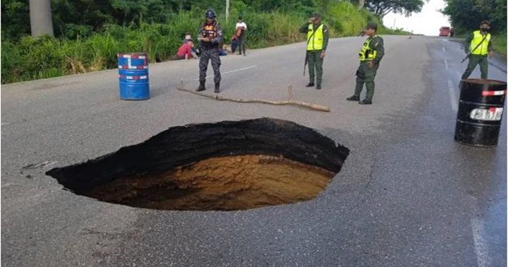 El cráter de 15 metros de profundidad que apareció en la carretera Lara – Zulia.