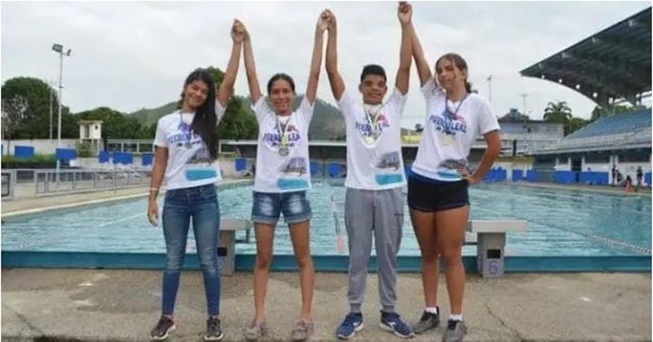 En el centro los nadadores con discapacidad María Isabella Andrade de 16 años y José De Nazareth Bolívar