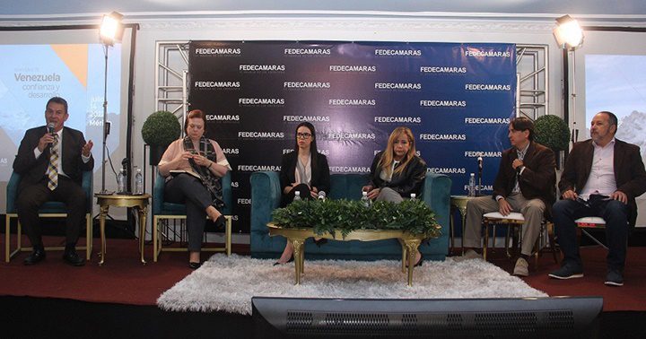 A propósito de la Asamblea Anual de Fedecámaras, el sector terciario tuvo participación en el conversatorio «Comercio y Servicios: Desafíos hacia un modelo productivo», moderado por la presidenta de Consejo Nacional del Comercio y los Servicios (Consecomercio), Tiziana Polesel, y el tesorero de Fedecámaras, César Guillén.