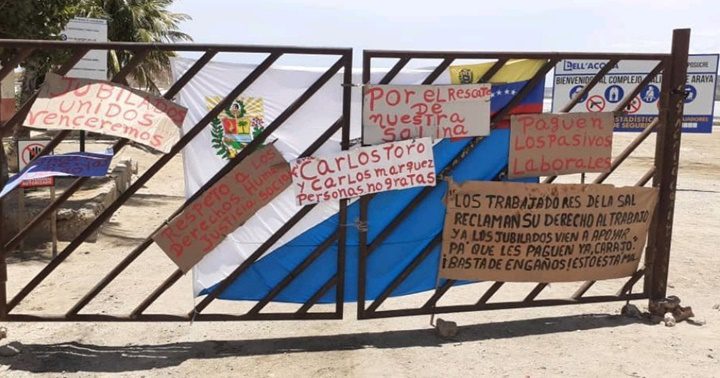 Anibal Nuñez, presidente de la Asociación de Jubilados y Pensionados de las Salinas de Araya del estado Sucre (AJPSAES) indicó que tras varios días de espera y el retraso en la cancelación de las deudas que mantiene este complejo con los trabajadores activos, jubilados y también los fallecidos, estos decieron radicalizar sus acciones de protesta.