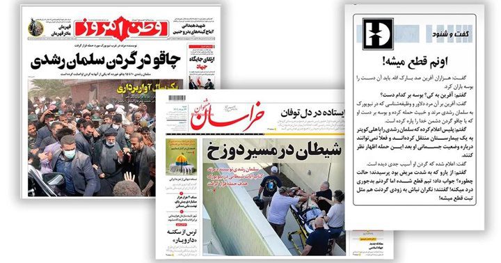 Según citó Iran International, otro diario extremista, Vatan-e Emrooz, también celebró el ataque y en su portada se puede leer: “Un cuchillo en el cuello de Salman Rushdie: El autor apóstata atacado en NY”.