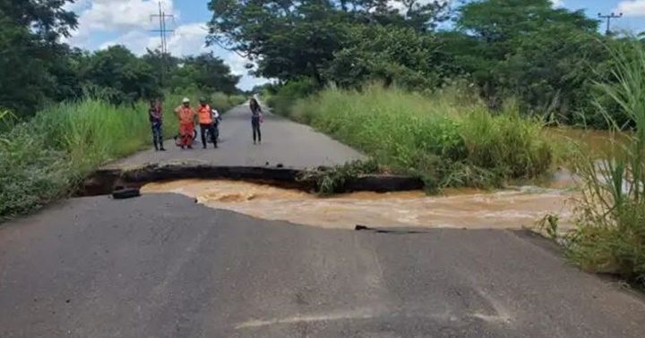 La carretera vieja Cantaura-Anaco se partió en dos tras las intensas lluvias en Anzoátegui