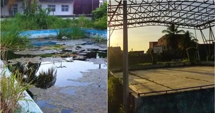 La maleza arropa gran parte de esta obra, mientras que la piscina del antiguo Instituto Nacional del Menor, situado frente al Complejo Educativo Alirio Goitía Araujo, presenta algas y hongos.