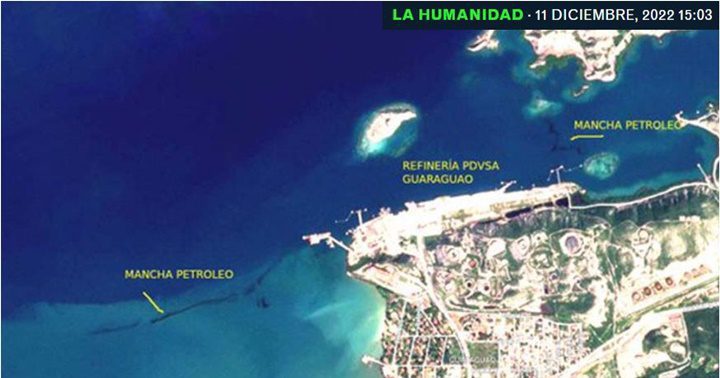 Una imagen satelital que compartió el profesor Eduardo Klein en su cuenta de Twitter, da cuenta de que este sábado 10 de diciembre continuaba el vertido de crudo desde la refinería de Petróleos de Venezuela SA (Pdvsa), en Guaraguao.