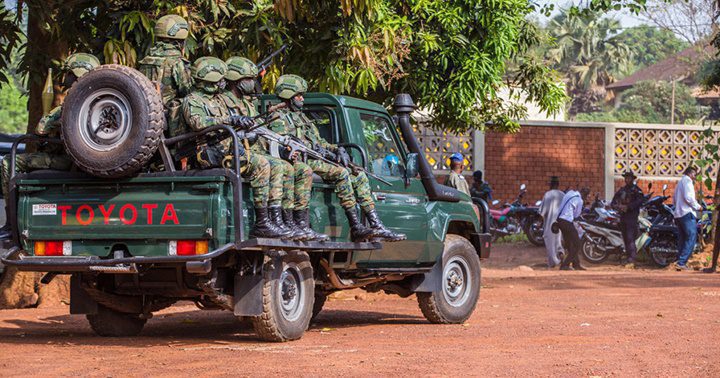 Soldados ruandeses toman medidas durante las elecciones presidenciales en República Centroafricana.