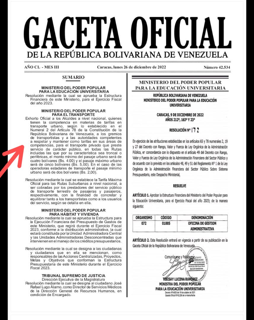 La tarifa anterior era de 2.50 bolívares, un monto que fue implementado el 20 de noviembre del 2022 y en un mes, después de esa medida, algunos conductores comenzaron a cobrar cinco bolívares, un hecho catalogado de abuso por buen número de usuarios.