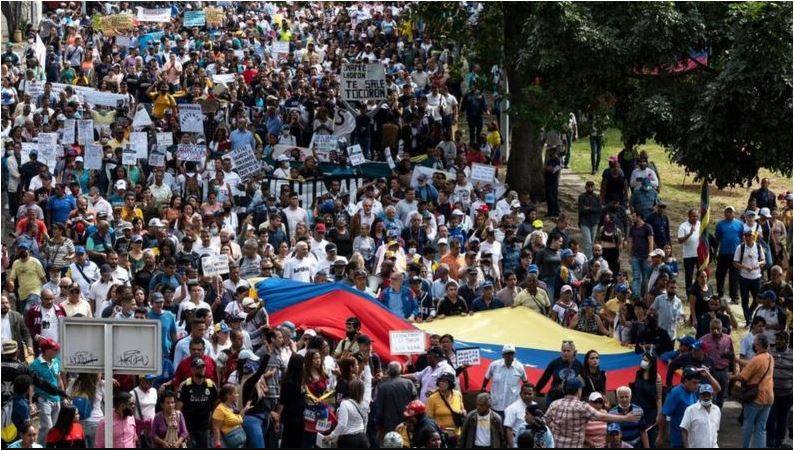 Miles de trabajadores tomaron las calles de Venezuela este 23 de enero exigiendo una nivelación de salarios acorde con el aumento de la inflación y el alto costo de la canasta familiar básica.