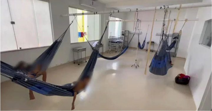 En un hospital en la Amazonía brasileña, niños yanomami convalecen sobre hamacas. Los casos de desnutrición y malaria infantil en esa etnia indígena se dispararon, impulsando al gobierno a declarar una emergencia sanitaria.