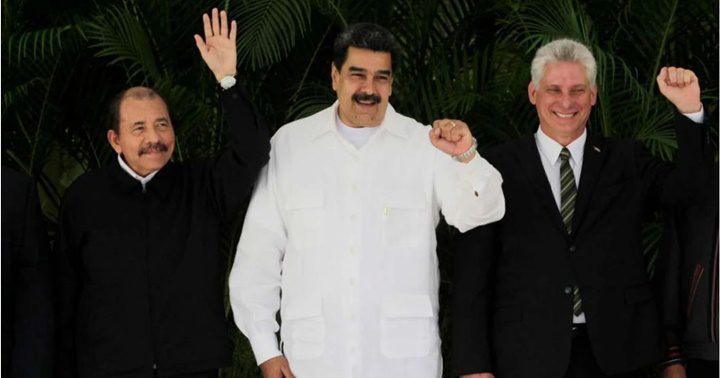 El presidente de Nicaragua, Daniel Ortega, el presidente de Venezuela, Nicolás Maduro, el presidente de Cuba, Miguel Díaz-Canel.