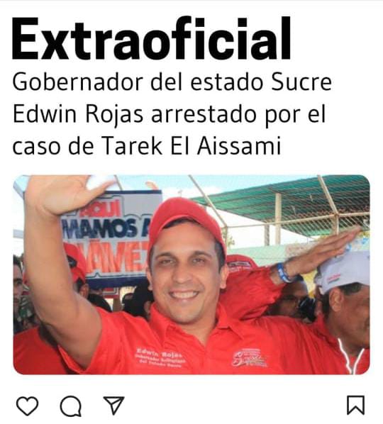 El exgobernador sucrense suma su nombre a la lista de detenidos por el escándalo de Pdvsa: el diputado Hugbel Roa, el superintendente de Criptoactivos, Joselit Ramírez y el empresario Heriberto Perdomo, todos ellos vinculados al exministro de Petróleo, Tareck El Aissami, quien renunció a su cargo.