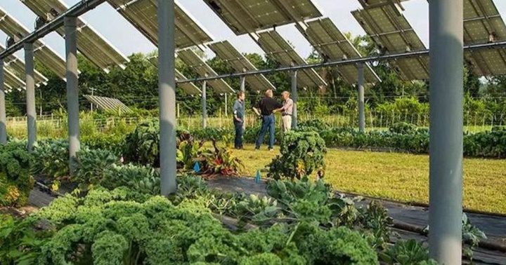 Los paneles solares captadores de luz solar funcionan mejor cuando no están demasiado calientes. Los cultivos los enfrían cuando están a la altura adecuada