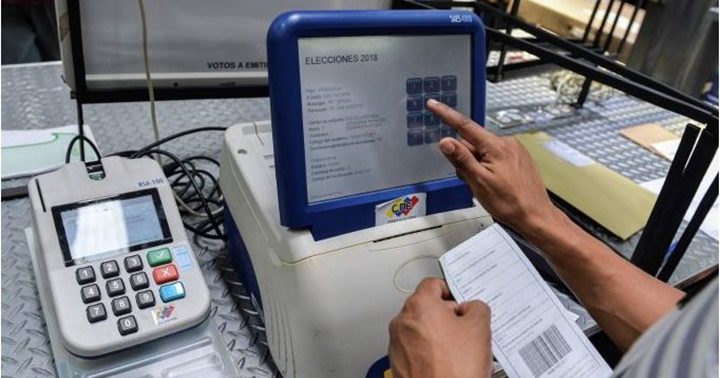 Una máquina de votación y una máquina captahuellas, mayo 2018.