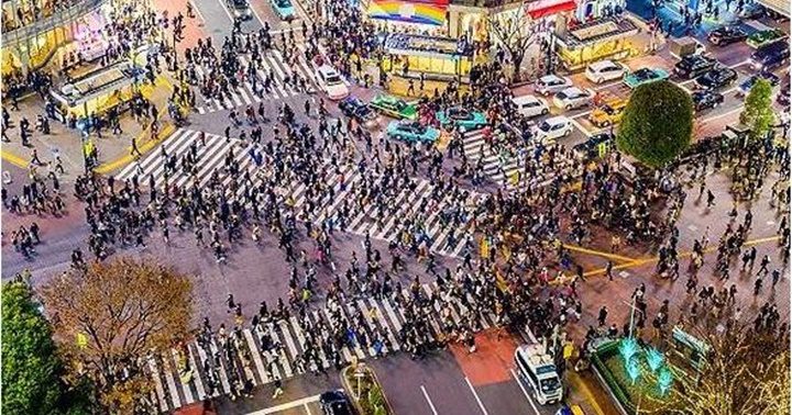 Peatones atraviesan el cruce de Shibuya, uno de los más transitados del mundo, en Tokio, Japón. Ecuaciones en la multitud, las matemáticas explican los carriles espontáneos que forman los peatones para no chocar. En medio del gentío, los individuos no son conscientes de las estructuras que forman al andar, solo de que esquivan a los demás.
