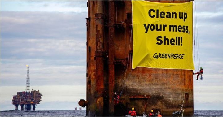 Activistas protestaron en el campo petrolero Brent en el Mar del Norte/ Marten van Dijl-Greenpeace.
