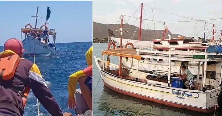 La embarcación Águila Nueva y sus cinco ocupantes: Juan León, José Francisco Zabala, Luis Rodríguez, José Rafael Marín y Francisco José Marín, fueron rescatados sanos y salvos la tarde de este martes 20 de junio.