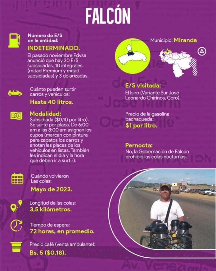 Este junio se cumplen tres años del nuevo esquema de venta de gasolina en Venezuela. El tercer aniversario de la dolarización del combustible en el país llegó acompañado de otro episodio de escasez. TalCual junto con ocho medios del interior del país consultaron cuánto tiempo –y cómo ha trastocado las dinámicas y el paisaje de las ciudades– la más reciente falla en el suministro de carburante en Anzoátegui, Bolívar, Falcón, Lara, Monagas, Táchira, Yaracuy y Zulia.