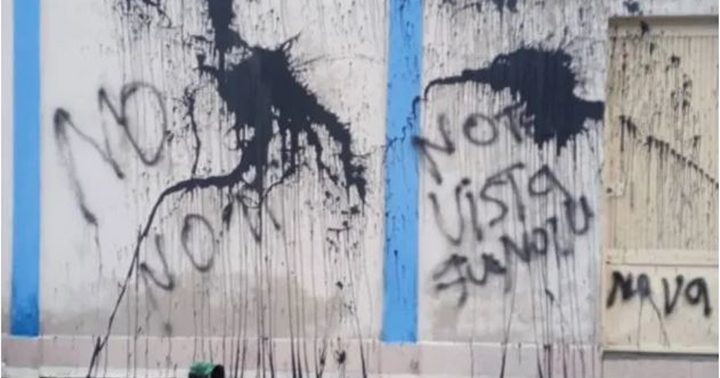 Los delincuentes arrojaron pintura sobre su fachada y colocaron pintas amenazantes tratando de atemorizar e impedir el acto de inauguración y juramentación de los integrantes del comando de Vente Venezuela.