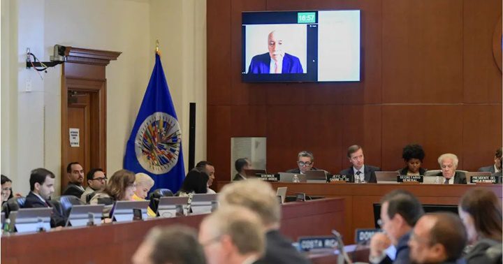 Reunión del Consejo Permanente de la Organización de los Estados Americanos (OEA), mientras interviene el jefe de la misión electoral del organismo en Guatemala, Eladio Loizaga, en Washington, D.C.