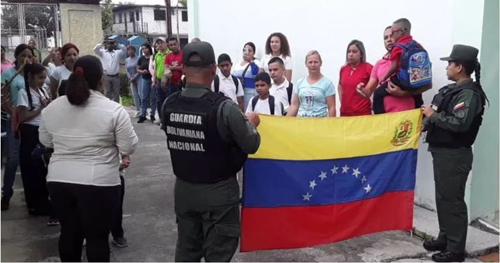 En la escuela Eloisa Fonseca, sector La Plata, parroquia Juan Ignacio Montilla, municipio Valera, Trujillo “hubo Guardias Nacionales en la entrada de la institución. En la UE Barrio Nuevo, en la Floresta, Valera, que la circundan unos 36 barrios, que alberga cerca de mil estudiantes desde preescolar hasta bachillerato, hubo presencia de uniformados, que en el turno de la mañana permaneciero en la entrada, pero en el de la tarde ingresaron a la institución”, dice la profesora Guerrero.