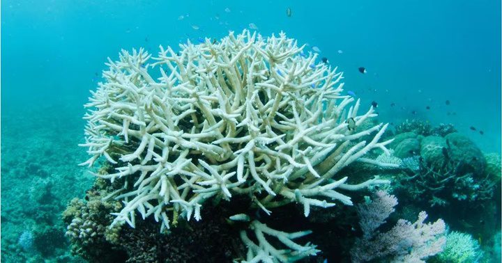 La Gran Barrera de Coral en Australia, durante un episodio de blanqueamiento, ejemplifica los problemas de la pérdida de biodiversidad.