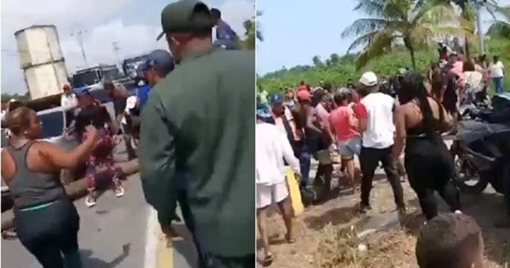 Los ciudadanos colocaron troncos de árboles y otros artefactos en la vía y se han enfrentado a los Guardias Nacionales que se acercaron al lugar a controlar la situación.