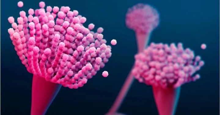 Los condióforos del hongo Aspergillus fumigatus. Los condióforos son los tallos de los hongos que producen esporas.