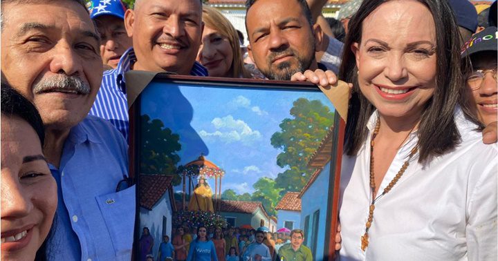 La candidata presidencial de la Plataforma Unitaria, María Corina Machado, se encuentra este domingo en la procesión Divina Pastora, debido a su devoción personal y para reflexionar sobre el futuro de Venezuela en el año 2024.