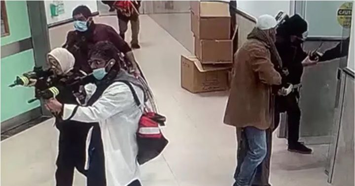 Las imágenes de las cámaras de seguridad difundidas por internet muestran a una docena de personas armadas, algunas vestidas con ropa de mujer y al menos dos de personal médico, recorriendo un pasillo del hospital Ibn Sina de Yenín con fusiles de asalto.