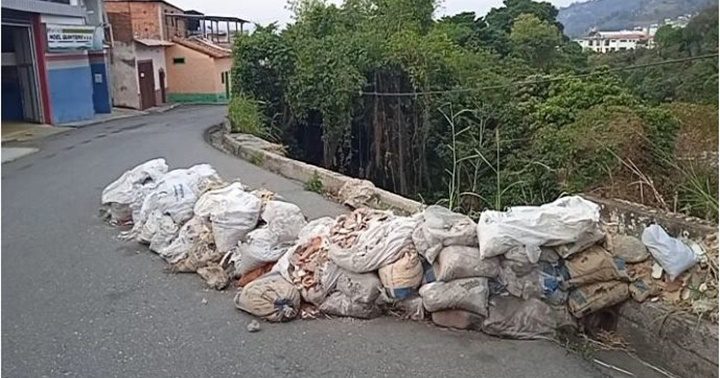 Otros de los problemas es la colocación de las bolsas de basura en los puntos que cerraron la carretera con cauchos y los sacos de piedra y arena.