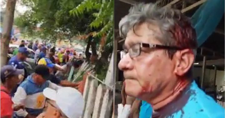 En la publicación se aprecia que el vehículo donde viajaba Machado recibió varios impactos en sus ventanas. Asimismo, uno de los participantes del acto resultó con un corte en su cabeza que provocó un fuerte sangrado.