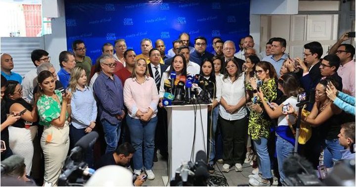La líder de Vente Venezuela, María Corina Machado, respondió este miércoles a las autoridades chavistas tras detener a dos miembros de su equipo y solicitar órdenes de aprehensión contra otros siete, entre ellos su jefa de campaña Magalli Meda.