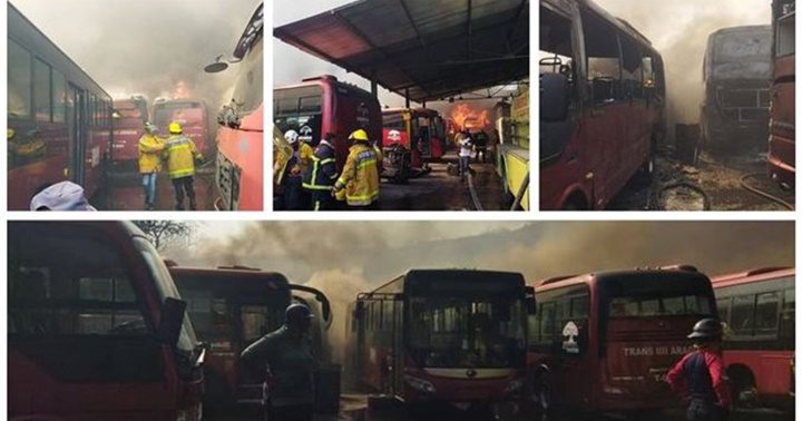 Un total de 120 buses propiedad de la estatal de transporte TransAragua quedaron calcinados según se dio a conocer el jueves 28 de marzo por la tarde. El incendio fue reportado en el interior de la sede de la empresa, ubicada en el sector El Tierral en San Joaquín de Turmero, municipio Santiago Mariño.