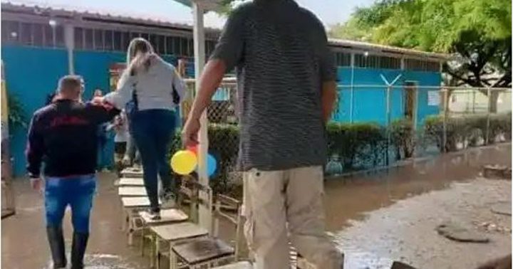 Desireé Contreras, presidenta del Consejo Legislativo de Barinas, fue fotografiada el domingo 21 de abril, en momentos que llegaba a una institución escolar del municipio Alberto Arvelo Torrealba, donde le armaron un puente con pupitres para que no se mojara los pies y pasara presuntamente a votar en la Consulta Popular organizada por el chavismo.