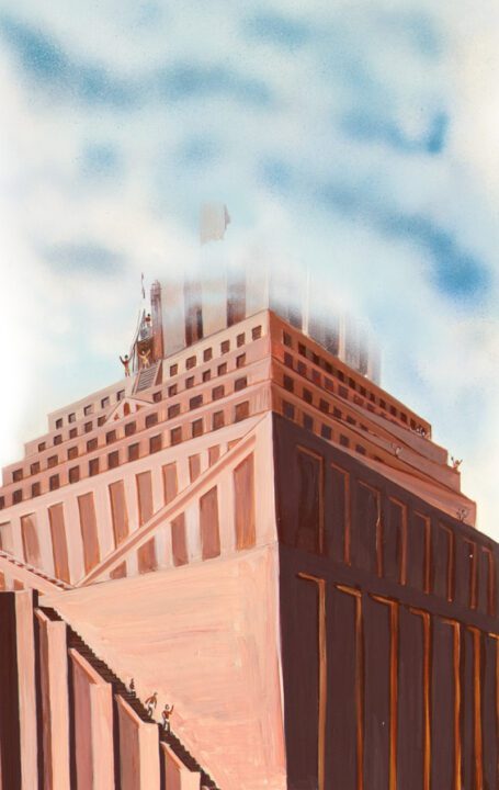 A Jehová Dios no le agradó este edificio. Él quería que la gente se fuera de allí y viviera por toda la Tierra. Pero ellos dijeron: ‘¡Vamos! Hagamos una ciudad y una torre tan alta que su parte de arriba llegue a los cielos. ¡Entonces seremos famosos!’ Querían honor para sí, no para Dios.