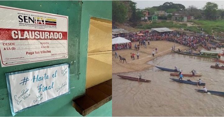 Clausurado, se lee en una calcomanía del ente tributario Seniat en la fachada del local de Corina Hernández y sus hermanas Mileidis y Elys Cabrera en Corozopando, un recóndito pueblo de paso con unos 600 habitantes en el estado Guárico (centro), convertido en símbolo de resistencia.
