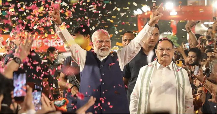 La Comisión Electoral de la India indicó que el BJP gana o lidera en 240 escaños de los 543 que componen la Cámara Baja del Parlamento o Lok Sabha, mientras que la coalición de la que forma parte el partido nacionalista hindú está a la cabeza en 285 asientos. Para formar una mayoría son necesarios 272 asientos.