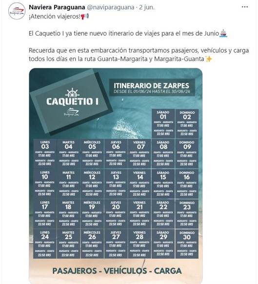 Naviera Paraguaná promociona al buque ‘Caquetío I’ como parte de su flotilla.
