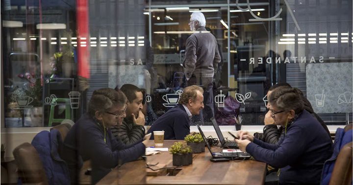 Trabajadores en un corporativo en Santiago de Chile.