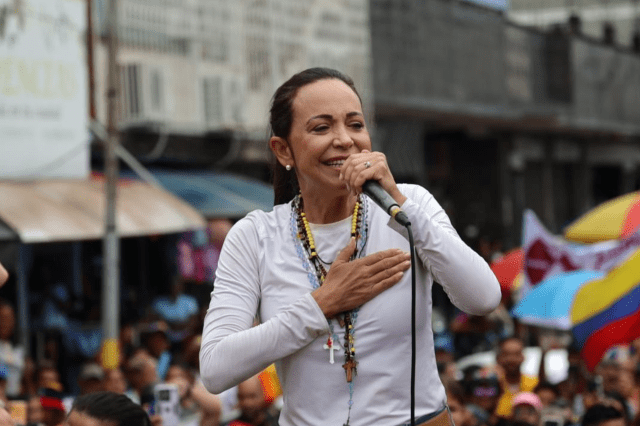 La líder democrática María Corina Machado acudió puntual este viernes a su cita en San Carlos, estado Cojedes, donde continuó su tarea de promover la candidatura unitaria de Edmundo González pese a los obstáculos que las autoridades locales le pusieron a su caravana.