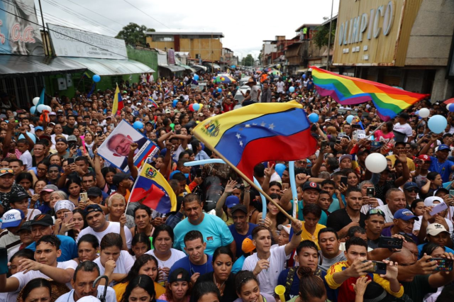Por último, la líder opositora sentenció: Demostraron que, pase lo que pase, llueva, truene o relampaguee, este 28 de julio habrá un tsunami de votos para Edmundo González.