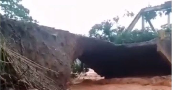 La Troncal 5 se partió y cayó al río luego de que las aguas se llevaran por completo el terreno junto a una de las bases donde reposa el puente.