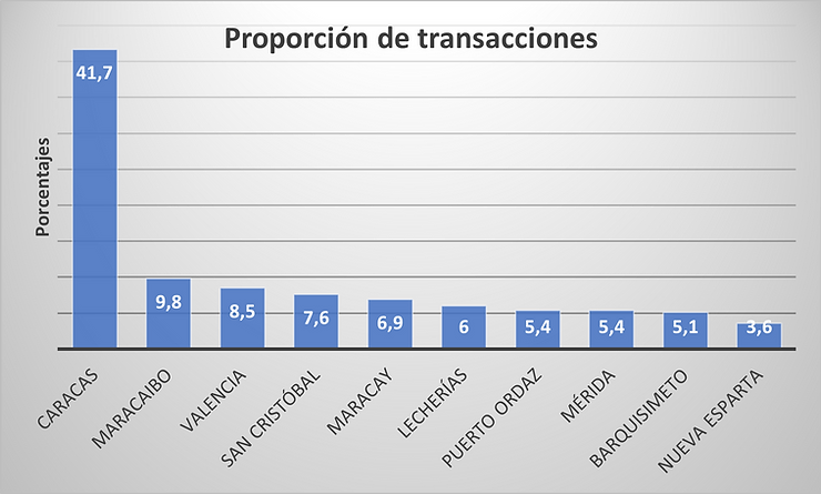 Al cierre de febrero de este año 41,7% de las transacciones se efectúan en Caracas y cuando se añaden Valencia y Maracay la proporción aumenta hasta 57,1%