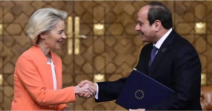Úrsula Von der Leyen, presidenta de la Comisión Europea, firmó los primeros 1.000 millones de euros del paquete de 7.400 millones que prometió a Egipto.